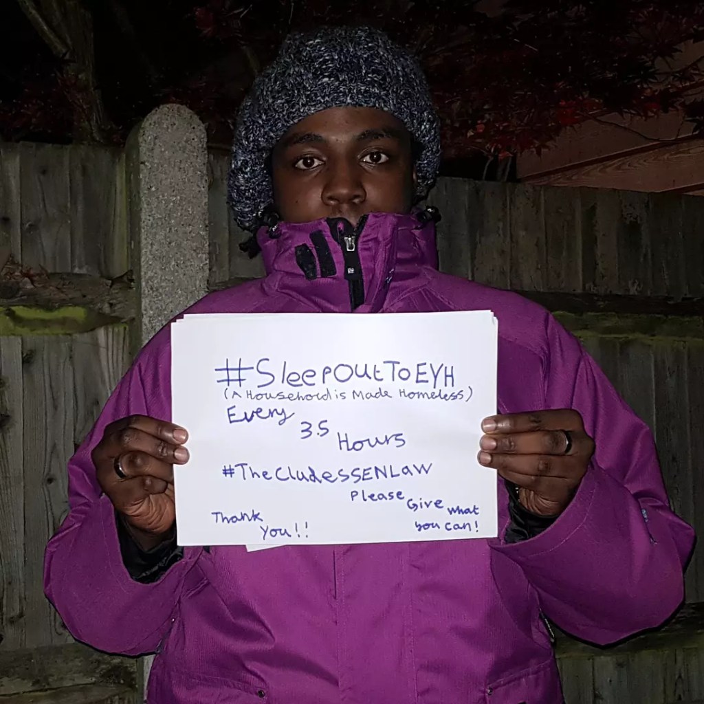 #SleepOutToEYH! #bbcin Sleep Out To End Youth Homelessness #TheClaudesSENLaw https://sleep-out-to-eyh.justgiving-sites.com/fundraising/sleep-out-to-end-youth-homelessness-theclaudessenlaw #badges